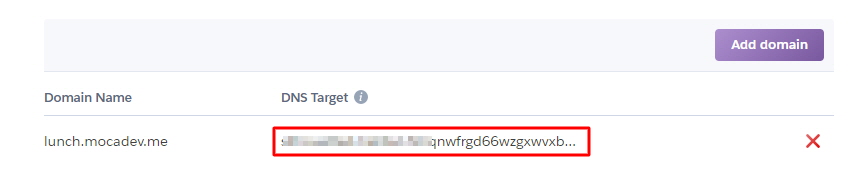 2. 연결된 도메인의 DNS Target값을 복사 합니다.